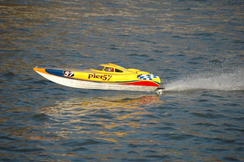 Offshoreracer aussehen zu lassen. Eine klassische Lackierung im Pier57 design, Z-Drive und ein mit Piloten bestückter Deckel.