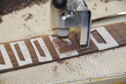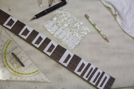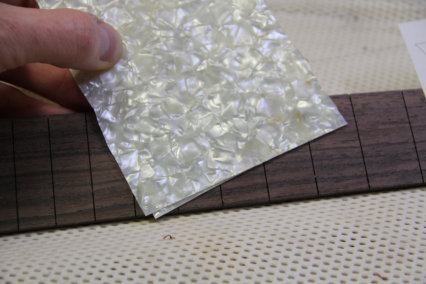 Noch vom Umbau der Epiphone hatte ich einen Satzt Inlay Schablonen auf selbstklebendem