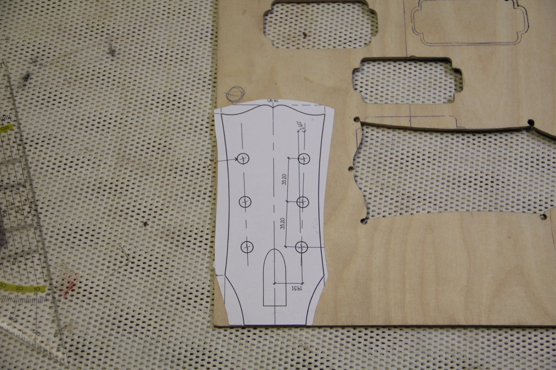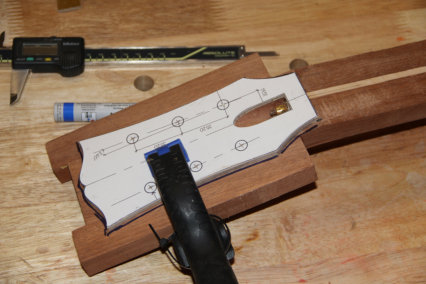 Zwischendurch habe ich eine neue Schablone aus Sperrholz für die Kopfplatte gemacht.