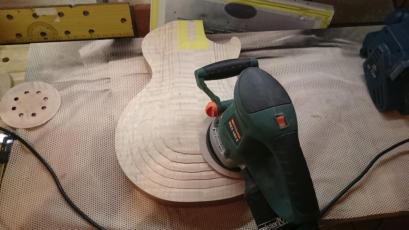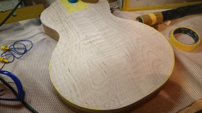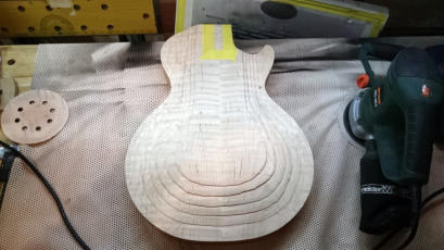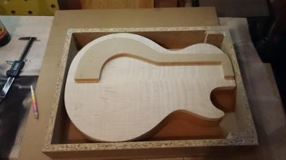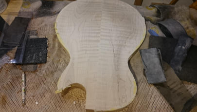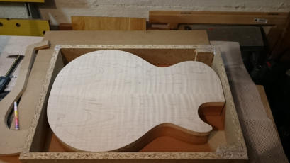 Weiter geht es mit dem Korpus. Die Ahorndecke ist noch um 4 mm zu dick. Mit einer