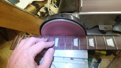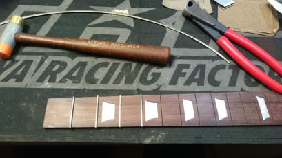 Das neue Griffbrett wird bundiert. Ich habe mir den Fretbender von Stewmac gegönnt.