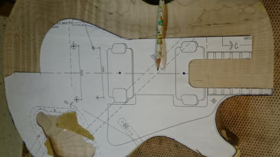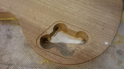 Hier fange ich an die Fräsung der Halstasche vorzubereiten. Ich möchte sicherstellen,