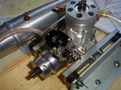 Das Triebwerk: Ein Kalistratov K21.Anders als auf dem Bild links, ist mittlerweile ein OS Vergaser mit externer Gemischverstellung verbaut.
