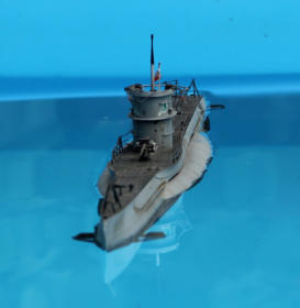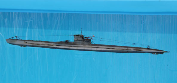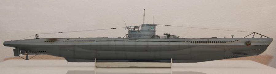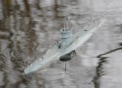 Das ist mein Revell U-boot Typ VIIC mit RC Umbau.Eigentlich ein normales Standmodell von Revell im Maßstab 1/72, doch dank Umbaukit von Norbert Brüggen handelt es sich hierbei um ein voll statisch tauchendes RC-U-Boot. Ich muss gestehen, mein bisher anspruchvollstes Modell. Das Boot habe ich abweichend vom Revellbaukasten nach dem Vorbild von U96 gestaltet. Deshalb der Sägefisch am Turm des Bootes. Schwieriger als gedacht gestaltet sich die Trimmung des Bootes über, sowie unter Wasser. Auch an der Entlüftung des Freiflutenden Raumes ausserhalb des Druckkörpers muss ich noch etwas feilen. Prinzipiell funktioniert es aber schon so wie es soll. Es taucht ab und auf Knnopfdruck wieder auf :-) Respekt an alle U-Boot-Modellbauer!Hier ein kurzes Video der ersten Testfahrten auf Goestas Gartenteich: